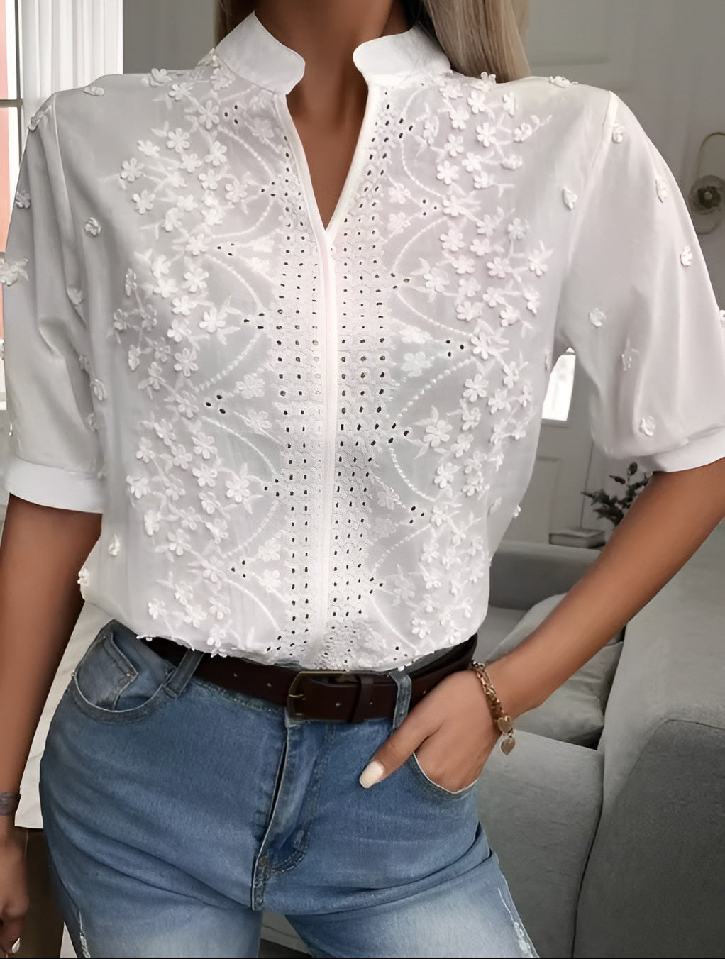 Louna | Blouse à col V avec dentelle délicate